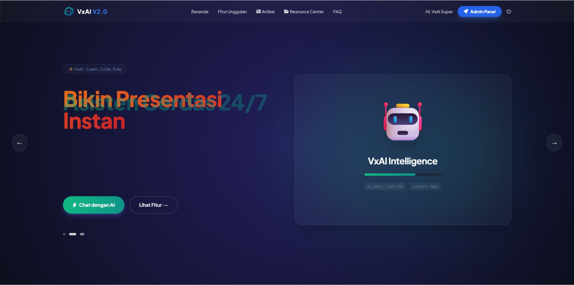 - Cara pakai: Ketik pertanyaan atau instruksi dalam bahasa Indonesia atau Inggris.